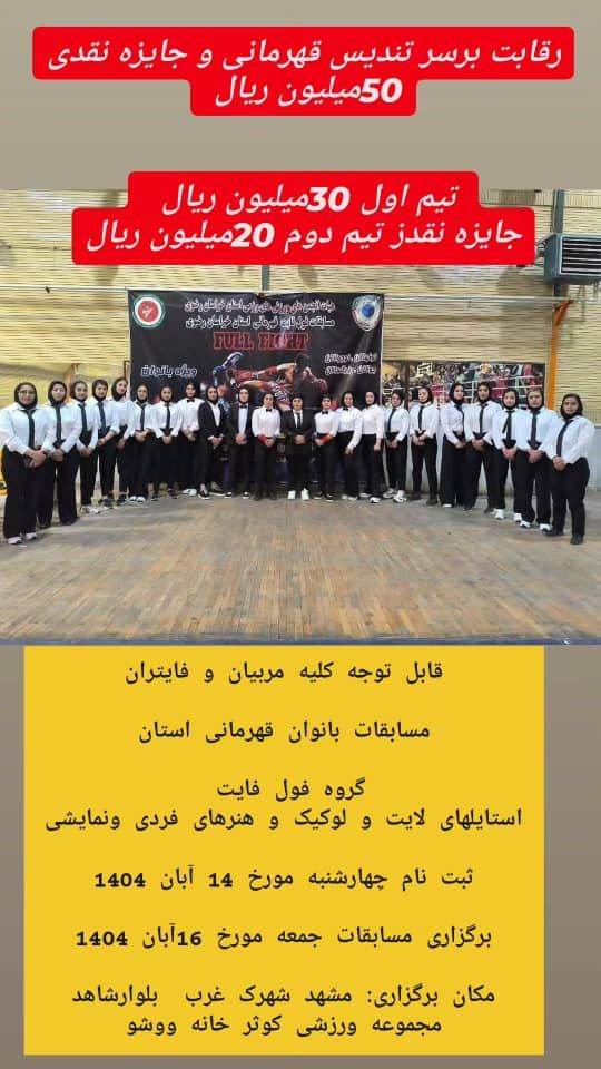 مکان برگزاری مسابقات: مشهد، شهرک غرب بلوارشاهد مجموعه ورزشی کوثر خانه ووشو